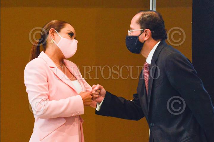 Manuel Andrade Martínez, director jurídico de la Auditoría Superior, y la diputada Marcela Guillermina Velasco; durante la primer entrega de los informes individuales del resultado de la fiscalización superior de la cuenta pública 2020, durante la reunión de la Comisión de Vigilancia de la Auditoría Superior de la Federación de la Cámara de Diputados.