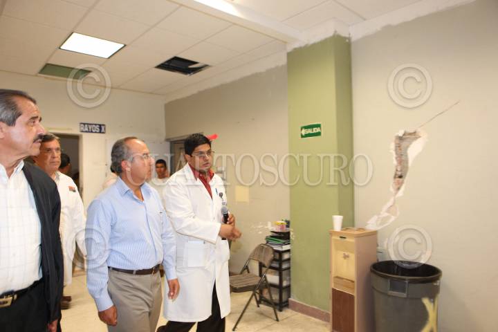 MEXICALI, BAJA CALIFORNIA, 05ABRIL2010.- Jose Ángel Cordova Villalobos, Secretario de Salud, junto a Felipe Calderón Hinojosa, Presidente de México, durante el recorrido que realizaron por algunos hospitales y clínicas de la zona que resultaron dañados a causa del temblor registrado el Domingo pasado. FOTO: ALFREDO GUERRERO/CUARTOSCURO.COM