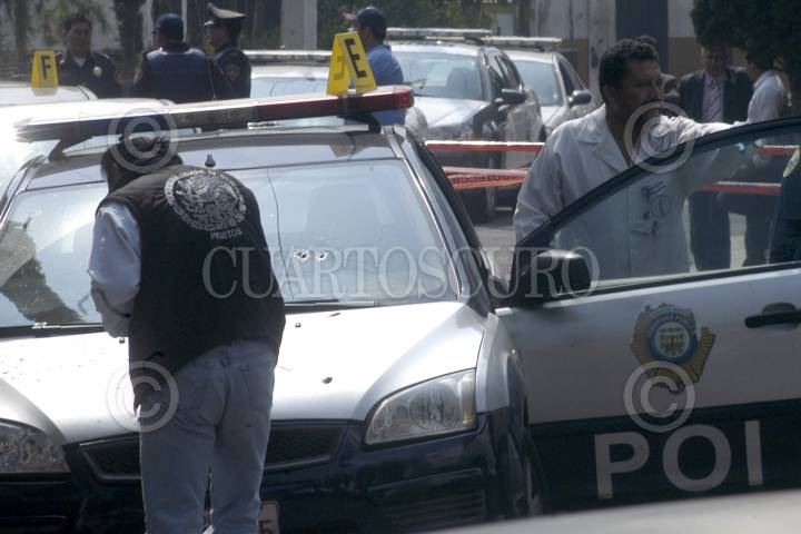 MÉXICO, D.F., 10JUNIO2010.- Dos policías resultaron lesionados al enfrentarse a varios sujetos que mantenían secuestrado al chofer de un taxi Tsuru. Los hechos se registraron al interior de la central de abastos en donde realizaron el secuestro el cual al realizar varias llamadas telefónicas se comenzó la búsqueda, siendo ubicados en la calle de Asunción y Juárez del Barrio la Asunción perímetro de la Delegación Iztapalapa registrándose el enfrentamiento con los elementos policíacos que viajaban abordo de dos patrullas de la Secretaria de Seguridad Publica. Dichos elementos fueron trasladados con vida al Hospital Mocel. FOTO: LUIS CARBAYO/CUARTOSCURO.COM