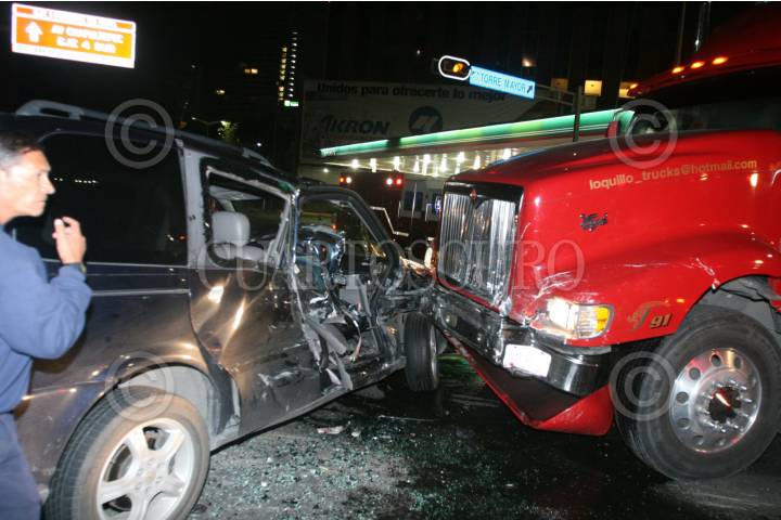 MÉXICO, D.F., 19AGOSTO2010.- Ismael Barrón de 25 años y dos personas más resultaron gravemente lesionados, después que la camioneta en que viajaban fuera embestida por un trailer en el cruce de Insurgentes y Villalongin en la Colonia Cuauhtémoc. FOTO: LUZ ACEVEDO/CUARTOSCURO.COM