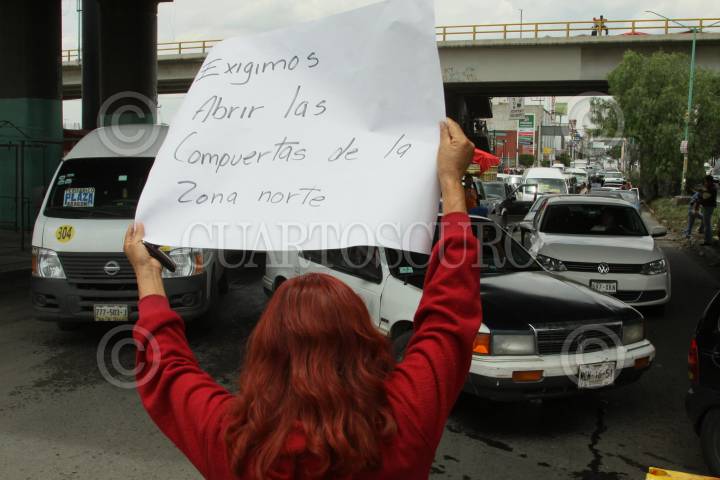 NEZAHUALCOYOTL, ESTADO DE MÉXICO, 03JULIO2011.- Un grupo de vecinos de la zona bloquearon la lateral de la avenida Central luego que en dias pasados resultaron afectados por las inundaciones que ocasionaron las lluvias. FOTO: ENRIQUE ORDÓÑEZ/CUARTOSCUR.COM