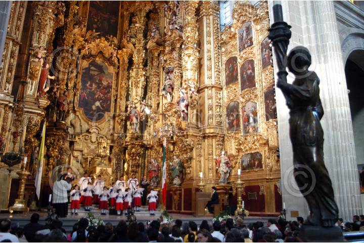 MÉXICO D.F. 25DICIEMBRE2006.- En el retablo principal de la catedral metropolitana se realizo el concierto Natividad del Señor con los niños del cantores de la catedral. Decenas de personas escucharon obras de Bach, Vivaldi, Praetorius entre otros. FOTO: GERMÁN ROMERO/CUARTOSCURO.COM