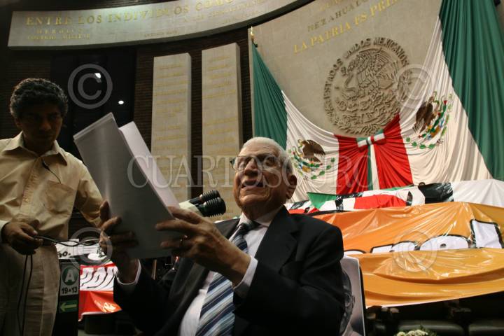 MÉXICO D.F. 21ABRIL2008.-Juventino V. Castro, ministro retirado, acudio esta tarde a la Cámara de Diputados, donde dialogo con diputados pertenecientes al FAP, donde hablo acerca del referendum y de la consulta nacional de la reforma energética. FOTO: GUILLERMO PEREA /CUARTOSCURO.COM