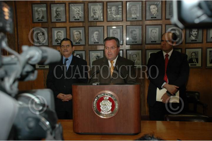 CIUDAD JUAREZ, CHIHUAHUA, 23FEBRERO2009.- rueda de prensa ofrecida por el alcalde Jose Reyes Ferriz, Guillermo Dowell Delgado, secretario del ayuntamiento y el Mayor retirado Roberto Orduña Cruz, donde anunciaron la renuncia de Orduña Cruz al cargo de Secretario de Seguridad Publica Municipal del municipio de Juárez. FOTO: BIENINFORMADO.COM/CUARTOSCURO.COM
