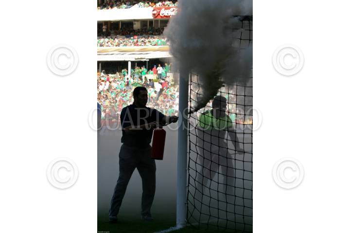 MÉXICO D.F., 10OCTUBRE2009.- Un enjambre de abejas fue retirado de una de las porterias y de un costado de la cancha durante el encuentro entre la Selección Mexicana de Futbol y su similar de El Salvador, ganando México 4 goles a 1 en el ultimo partido del hexagonal final rumbo a Sudafrica 2010 que se realizo en el estadio Azteca. FOTO: RODOLFO ANGULO/CUARTOSCURO.COM