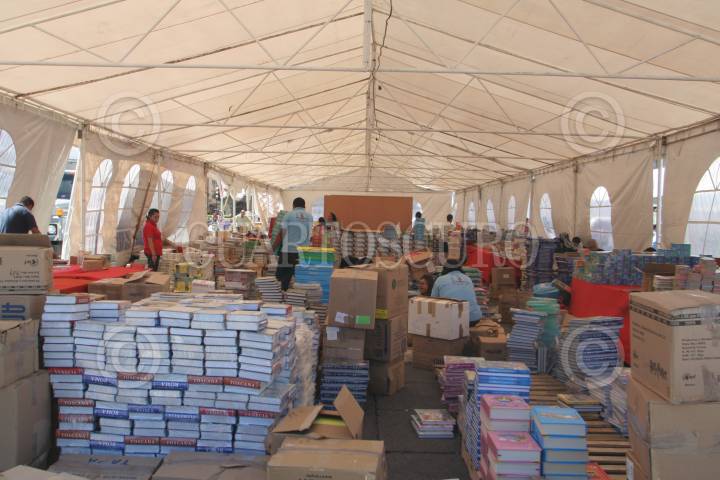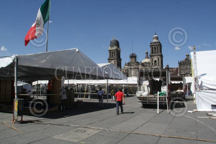MÉXICO D.F. 16OCTUBRE2009.- La feria del libro vuelve a colocar sus puestos en la plancha del zócalo tras haberse retirado por la marcha de electricistas realizada el dia de ayer. FOTO: ENRIQUE ORDÓÑEZ/CUARTOSCURO.COM