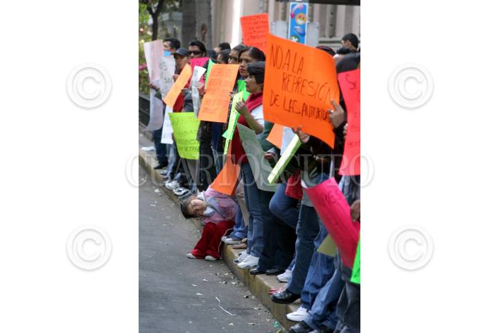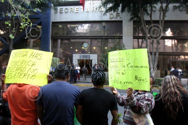 MÉXICO D.F., 09ENERO2008.- Vendedores ambulantes que fueron retirados de las calles del Centro Histórico acudieron a las oficinas de la Secretaria de Seguridad Publica del DF para manifestarse en contra del secretario Joel Ortega por los operativos que les impide vender sus productos. FOTOS: PEDRO MARRUFO/CUARTOSCURO.COM