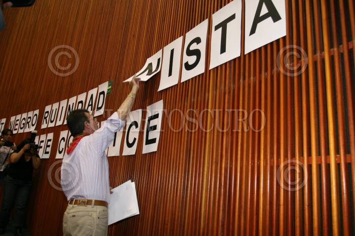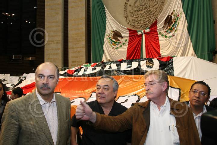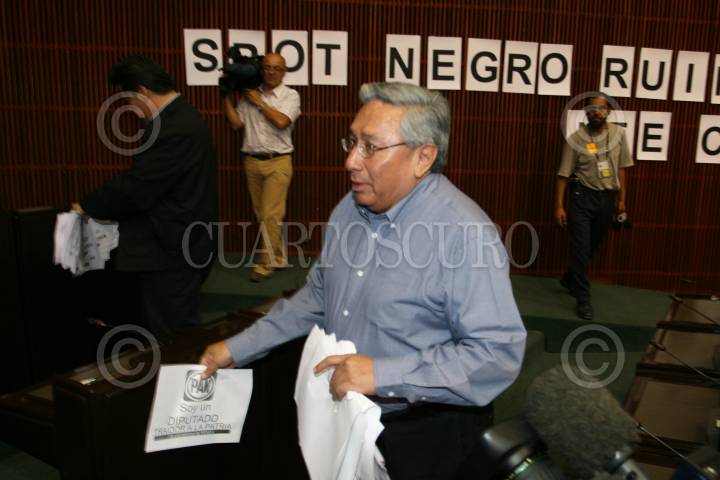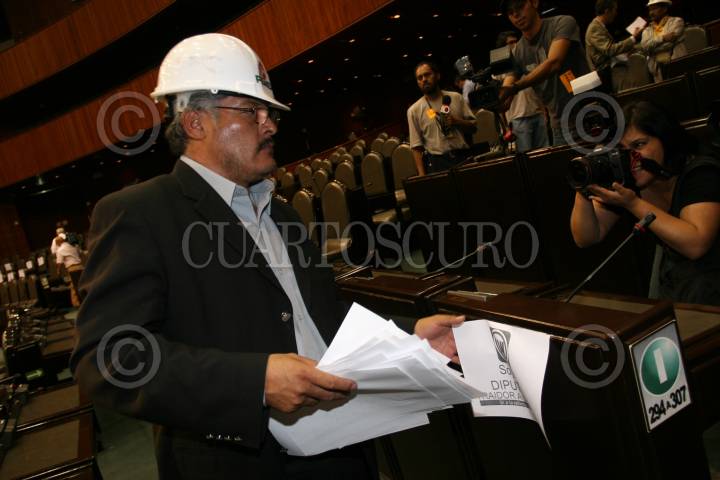 MÉXICO D.F. 21ABRIL2008.-Por la maña el salón de plenos de la Cámara de Diputados amanecio con letreros con la leyenda de "Soy un Diputado Traidor de la Patria" letreros que después fueron retirados por diputados del pertenecientes al FAP. En la imegen el diputado, Javier González Garza (PRD).FOTO: GUILLERMO PEREA /CUARTOSCURO.COM