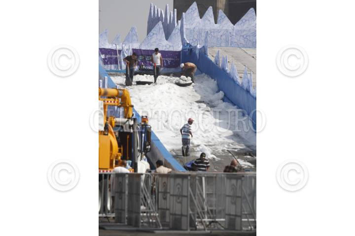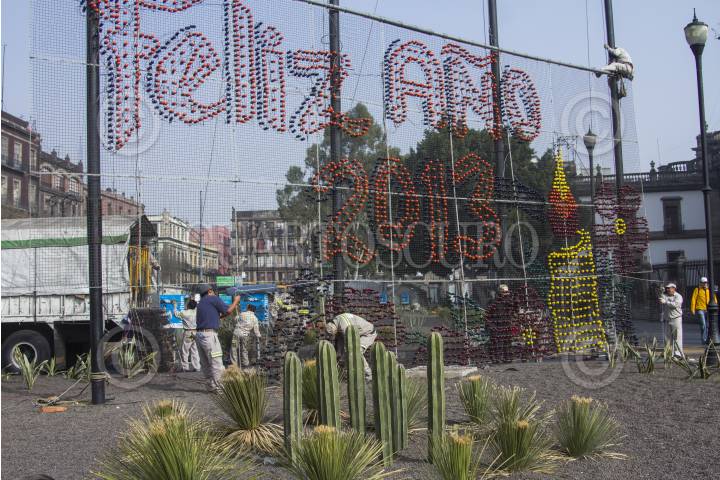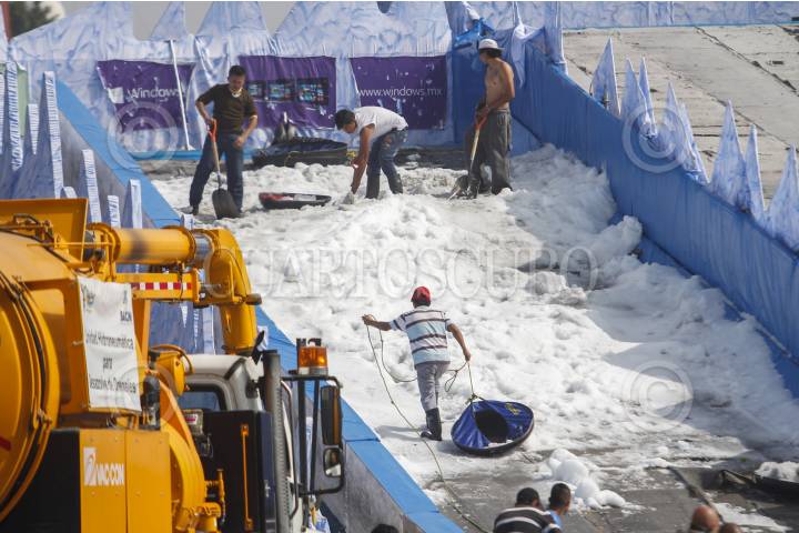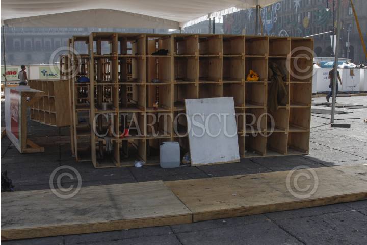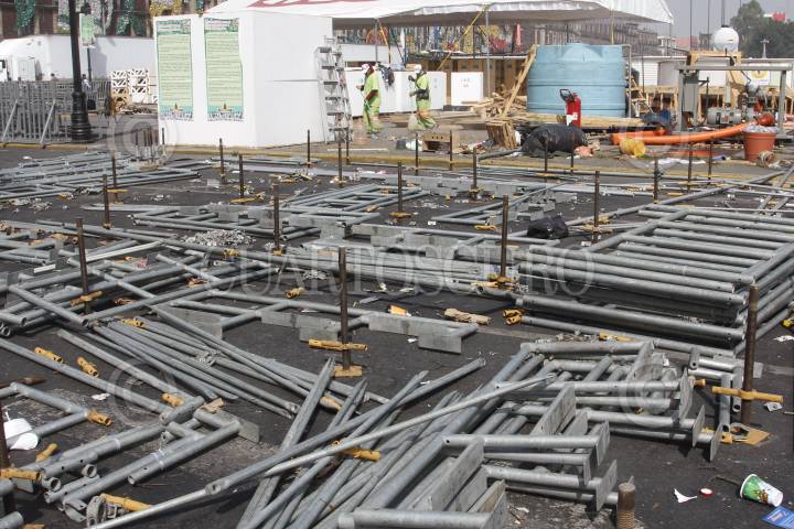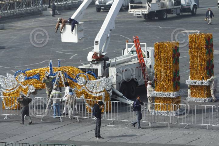 MÉXICO, D.F., 07ENERO2013.- Trabajadores del Gobierno del Distrito Federal comenzaron a retirar los adornos navideños, la pista de hielo y rampas que colocaron para la gente que acudió al zócalo capitalino en las vacaciones de fin de año. FOTO: ENRIQUE ORDÓÑEZ /CUARTOSCURO.COM