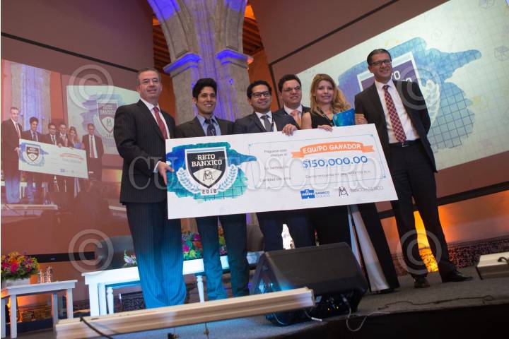 CIUDAD DE MÉXICO, 31MAYO2018.- Se llevó a cabo la ceremonia de premiación de Reto Banxico, en la cual se galardonó al equipo de jóvenes estudiantes del Intituto Tecnológico Autónomo de México. El acto estuvo encabezado por Alejandro Díaz de León, gobernador del Banco de México y Óscar Durán, director de vinculación de Banxico. FOTO: TERCERO DÍAZ /CUARTOSCURO.COM