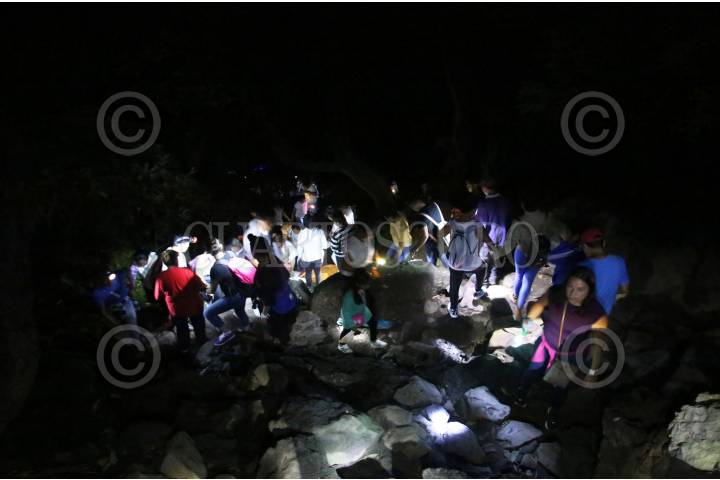 TEPOZTLÁN, MORELOS, 08SEPTIEMBRE2019.- Alrededor de tres mil personas subieron al cerro del Tepozteco la noche de ayer para presenciar el “Reto al Tepozteco” celebración centenaria donde se representa la conversión al cristianismo de Tepoztecatl. La pirámide fue iluminada para esta ocasión. FOTO: MARGARITO PÉREZ RETANA /CUARTOSCURO.COM