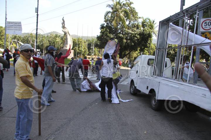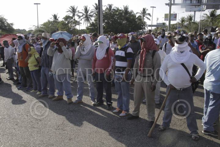 ACAPULCO, GUERRERO, 10FEBRERO2015.- Trabajadores de la educación pertenecientes a la Coordinadora estatal de trabajadores de la educación en Guerrero marcharon sobre la costera Miguel Alemán en demanda del pago de sus salarios y la presentación con vida de los 43 normalistas de Ayotzinapa. Los mentores bloquearon los accesos del aeropuerto y retiraron propaganda electoral. FOTO: BERNANDINO HERNÁNDEZ /CUARTOSCURO.COM