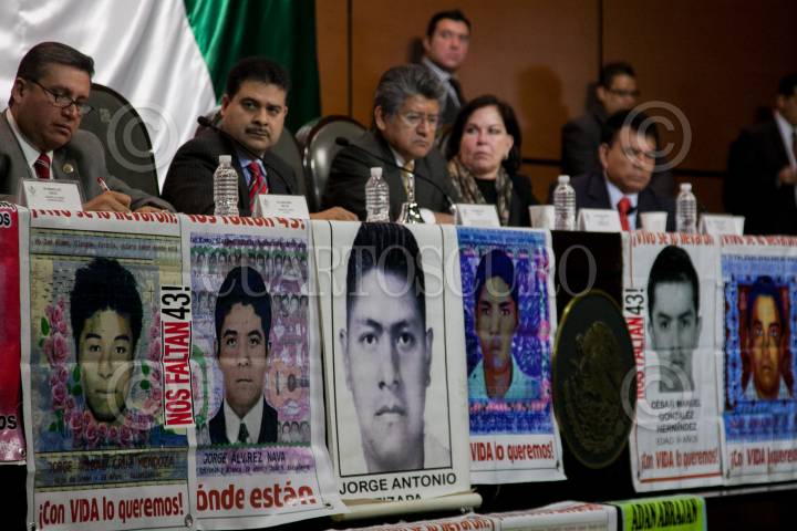 CIUDAD DE MÉXICO, 23NOVIEMBRE2016.- Padres de los 43 normalistas de Ayotzinapa se reunieron en el salón verde de la Cámara de Diputados para exigir solución y la presentación con vida de sus hijos. A dos años de la desaparición de los estudiantes aun no hay una respuesta concreta por parte de las autoridades, los padres desconocieron una vez más la versión del basurero de Cocula y declararon que no pararan su búsqueda hasta no encontrar a sus hijos. En la imagen Álvaro Ibarra Hinojosa, presidente de la Comisión de Justicia; Cándido Ocho Rojas, diputado del Partido Verde Cándido Ochoa Rojas; Francisco Martínez Neri, presidente de la Junta de Coordinación Política; Mercedes del Carmen Guillen, presidenta de la Comisión de Gobernación, y Vitalicio Candido Coheto, presidente de la Comisión de Grupos Indígenas. FOTO: GALO CAÑAS /CUARTOSCURO.COM