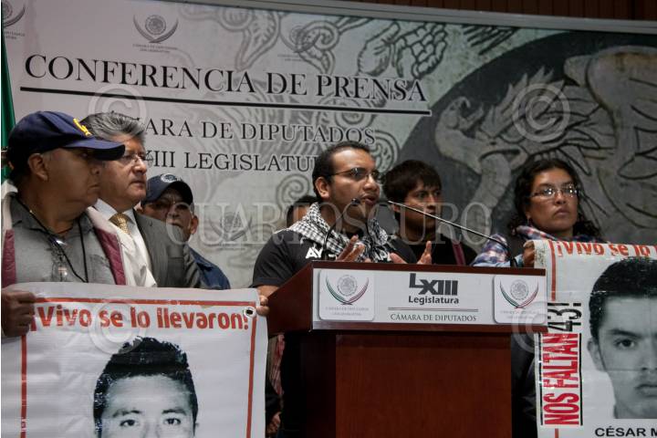 CIUDAD DE MÉXICO, 23NOVIEMBRE2016.- Padres de los 43 normalistas de Ayotzinapa se reunieron en el salón verde de la Cámara de Diputados para exigir solución y la presentación con vida de sus hijos. A dos años de la desaparición de los estudiantes aun no hay una respuesta concreta por parte de las autoridades, los padres desconocieron una vez más la versión del basurero de Cocula y declararon que no pararan su búsqueda hasta no encontrar a sus hijos. En la imagen Vidulfo Rosales, abogado de los padres. FOTO: GALO CAÑAS /CUARTOSCURO.COM