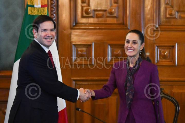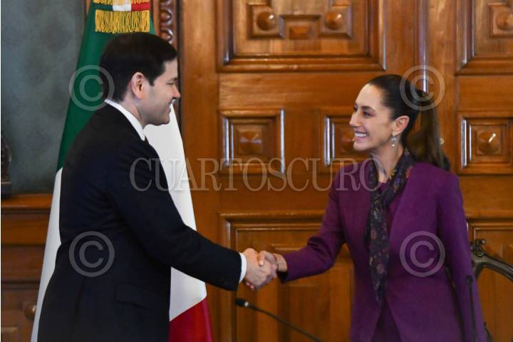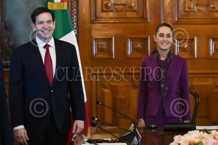CIUDAD DE MÉXICO, 03SEPTIEMBRE2025.- Claudia Sheinbaum, presidenta de México, y Marco Rubio, secretario de Estado de los Estados Unidos, durante la reunión que sostuvieron en Palacio Nacional en la que se abordaron temas de seguridad, migración y comercio. FOTO: MARIO JASSO/CUARTOSCURO.COM