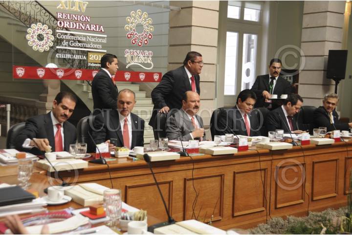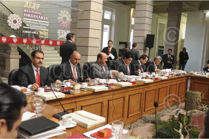 CHIHUAHUA, CHIHUAHUA, 18FEBRERO2013.-César Duarte Jáquez, gobernador de Chihuahua y Presidente de la Conferencia Nacional de Gobernadores, encabezó la reunión plenaria privada de Conago en el Museo Casa Chihuahua, con la presencia de todos sus homólogos del país y el Jefe de Gobierno del Distrito Federal, Miguel Ángel Mancera. Los resolutivos, será presentados en un momento más en la reunión plenaria de la XLIV de la Conferencia Nacional de Gobernadores, en la cual estará presente el Presidente de la República, Enrique Peña Nieto. FOTO: CUARTOSCURO.COM