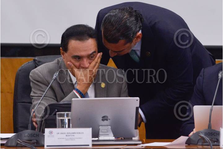 Luis Armando Melgar, presidente de la Comisión de Hacienda y Crédito Público de la Cámara de Diputados, y Ángel Benjamín Robles, durante la reunión en la que se somete a discusión los dictámenes de la miscelánea fiscal, código fiscal de la federación y la Ley de Ingresos 2022.