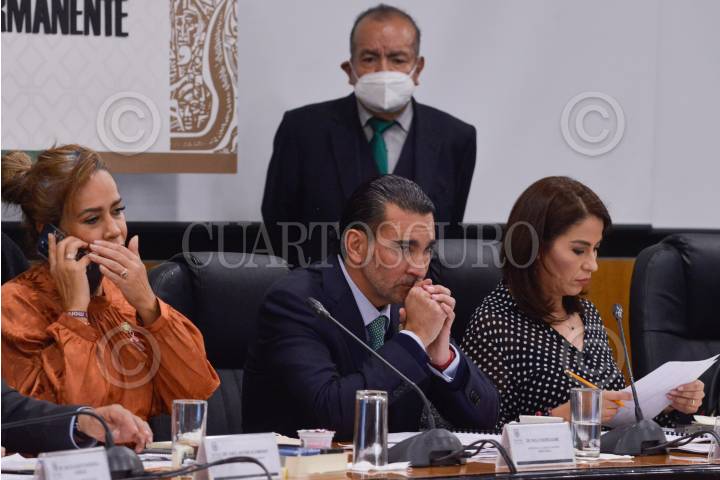 Luis Armando Melgar, presidente de la Comisión de Hacienda y Crédito Público de la Cámara de Diputados, y Carol Antonio Altamirano, durante la reunión en la que se somete a discusión los dictámenes de la miscelánea fiscal, código fiscal de la federación y la Ley de Ingresos 2022.