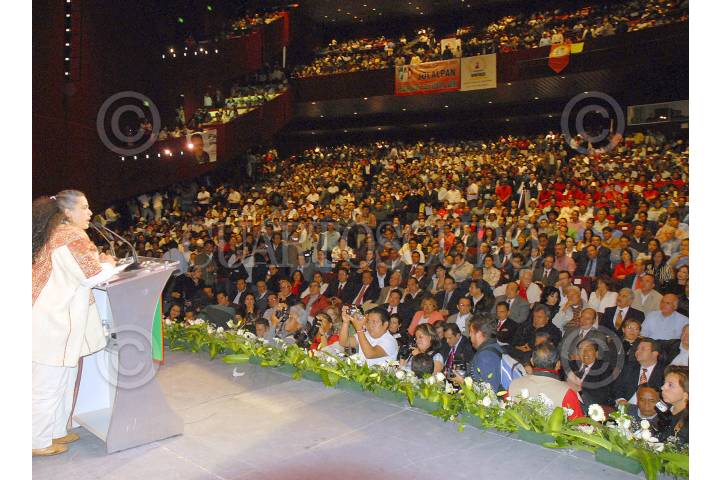 MEXICO, D.F., 23AGOSTO2007.- La Presidenta del CEN del PRI, Beatriz Paredes, tomó la protesta a los candidatos a diputados locales y presidentes municipales del estado de Puebla, ante más de seis mil poblanos reunidos en el Complejo Cultural Siglo XXI de aquella entidad. FOTO:FRANCISCO MARTÍNEZ/CUARTOSCURO.COM