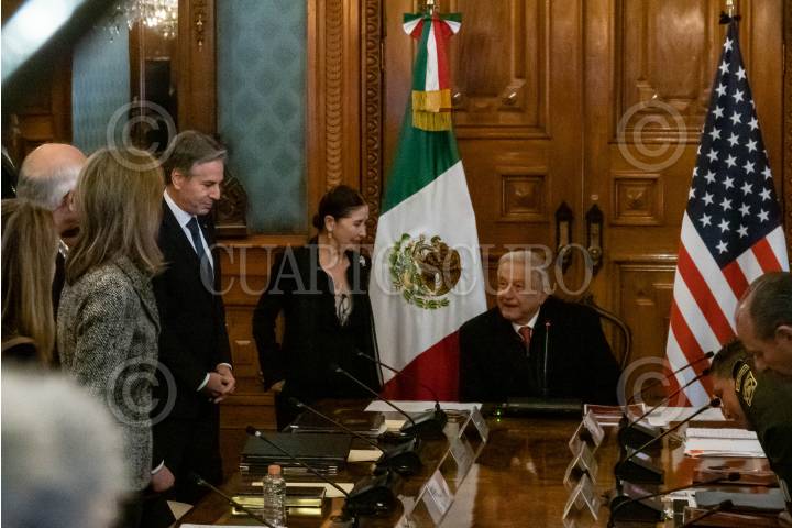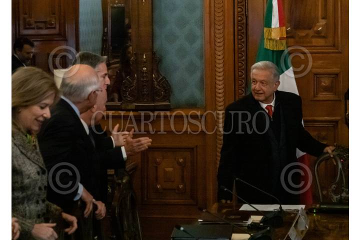 CIUDAD DE MÉXICO, 27DICIEMBRE2023.- Andrés Manuel López Obrador, presidente de México, encabezó la reunión de alta seguridad con la delegación estadounidense encabezada por: Anthony Blinken, secretario de Estado; Alejandro Mayorkas, secretario de Seguridad Nacional, y Elizabeth Sherwood-Randall, asesoría de Seguridad Nacional, así como el embajador Ken Salazar. FOTO: GALO CAÑAS/CUARTOSCURO.COM