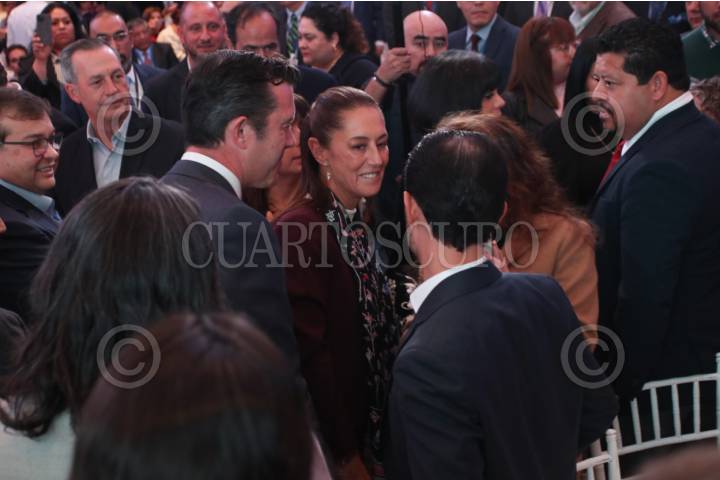 CIUDAD DE MÉXICO, 15ENERO2024.- Claudia Sheinbaum se reunió con integrantes del American Society 2024, en la Hacienda de Los Morales. También la acompañaron Mario Delgado, dirigente de Morena y Omar García Harfuch. FOTO: ANDREA MURCIA /CUARTOSCURO.COM