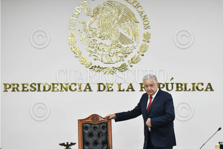 CIUDAD DE MÉXICO, 02AGOSTO2024.- Andrés Manuel López Obrador, presidente de México, al finalizar su conferencia matutina realizada en el salón Ignacio Zaragoza de Palacio Nacional. FOTO: MARIO JASSO/CUARTOSCURO.COM