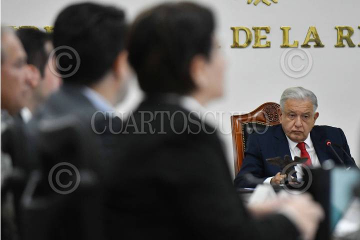 CIUDAD DE MÉXICO, 02AGOSTO2024.- Andrés Manuel López Obrador, presidente de México, durante la reunión de seguridad abierto a medios de comunicación, en el salón Ignacio Zaragoza de Palacio Nacional. FOTO: MARIO JASSO/CUARTOSCURO.COM