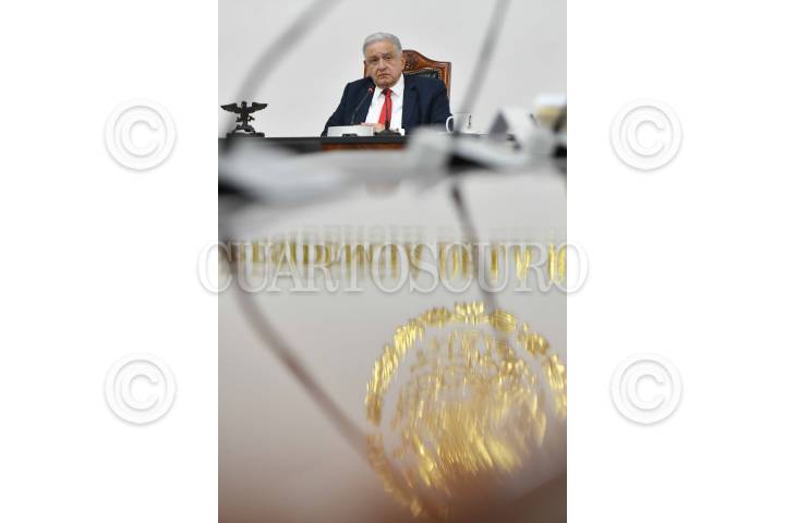 CIUDAD DE MÉXICO, 02AGOSTO2024.- Andrés Manuel López Obrador, presidente de México, encabezó la conferencia matutina realizada en el salón Ignacio Zaragoza de Palacio Nacional. Lo acompañan: Laura Velázquez, coordinadora Nacional de Protección Civil; Félix Arturo Medina, subsecretario de Derechos Humanos, Población y Migración; Luis Cresencio Sandoval, secretario de la Defensa Nacional; Rosa Icela Rodríguez, secretaria de Seguridad y Protección Ciudadana; María Estela Ríos, consejera Jurídica del Ejecutivo Federal; Jesús Ramírez Cuevas, coordinador de Comunicación Social de Presidencia; Luisa María Alcalde, secretaria de Gobernación; Rafael Ojeda Durán, secretario de Marina; Alicia Bárcena, secretaria de Relaciones Exteriores; Luis Rodríguez Bucio, subsecretario de Seguridad Pública. FOTO: MARIO JASSO/CUARTOSCURO.COM