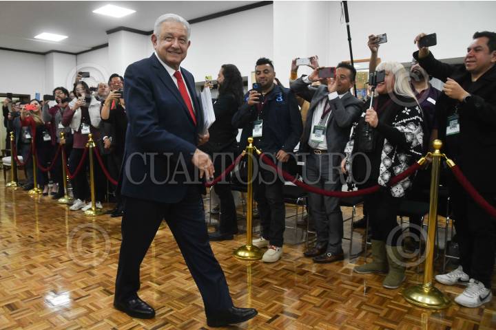 CIUDAD DE MÉXICO, 02AGOSTO2024.- Andrés Manuel López Obrador, presidente de México, durante su llegada a la reunión de seguridad abierto a medios de comunicación, en el salón Ignacio Zaragoza de Palacio Nacional. FOTO: MARIO JASSO/CUARTOSCURO.COM