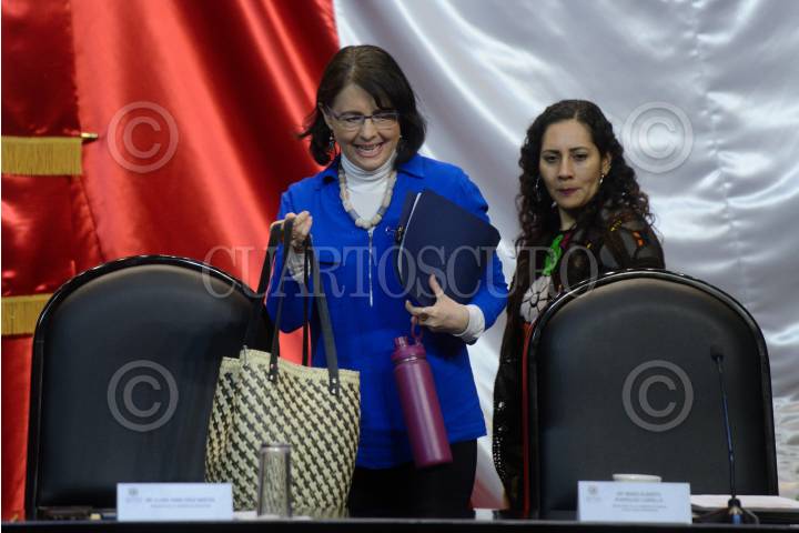 Santiago Creel, presidente de la mesa directiva, y Oksana Dramarétska, embajadora de Ucrania en México, durante la tercer reunión del grupo de amistad Ucrania-México.