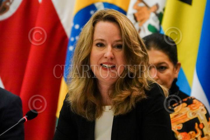 CIUDAD DE MÉXICO, 25JUNIO2024.- Amy Pope, Directora General de la Organización Internacional para las Migraciones (OIM) durante la inauguración de “Reunión hemisférica sobre vías regulares para la migración laboral” a fin de trazar planes y proyectos conjuntos para atacar los problemas estructurales que enfrentan las y los refugiados en su tránsito o al momento de llegar a los países destino. FOTO: GALO CAÑAS/CUARTOSCURO.COM