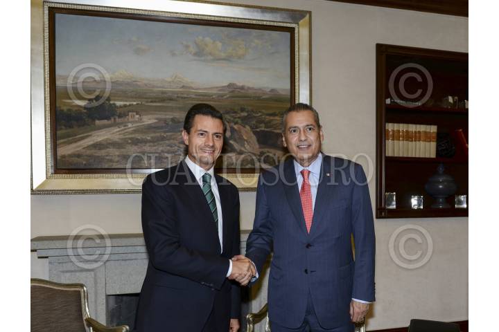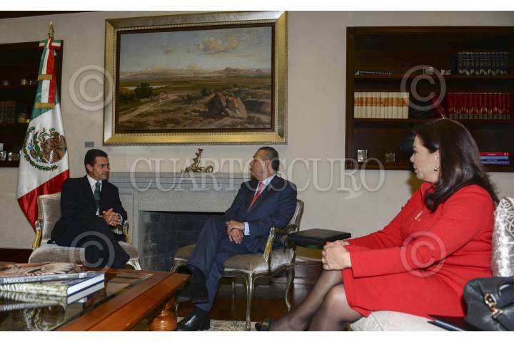 MÉXICO D.F., 24AGOSTO2015.- El Presidente de la República, Enrique Peña Nieto, se reunió hoy en la Residencia Oficial de Los Pinos con el Presidente y la Secretaria General del Comité Ejecutivo Nacional del Partido Revolucionario Institucional, Manlio Fabio Beltrones y Carolina Monroy, con quienes abordó distintos temas de la agenda nacional. FOTO: PRESIDENCIA /CUARTOSCURO.COM