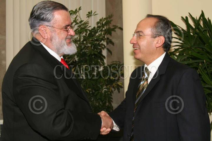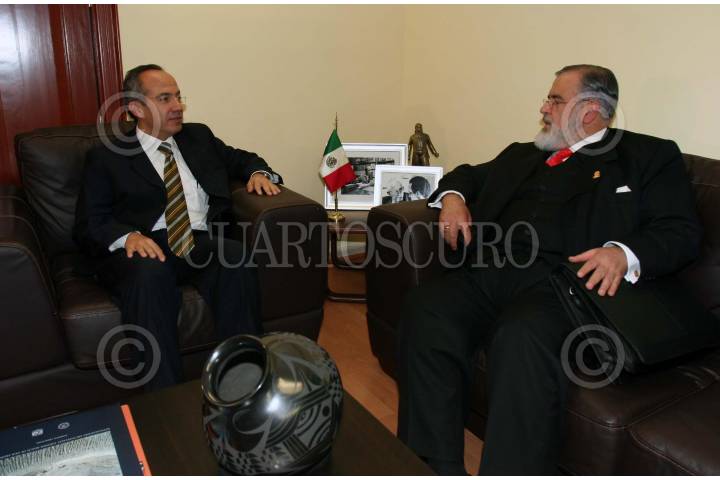 MEXICO DF 31 OCTUBRE 2006.- El presidente electo de México, Felipe Calderon Hinojosa, se reunio con el doctor Jose Luis Soberanes, presidente de la comisión de los Derechos Humanos. FOTO:ALFREDO GUERRERO/CUARTOSCURO