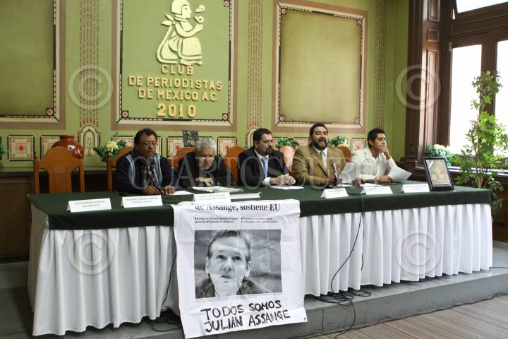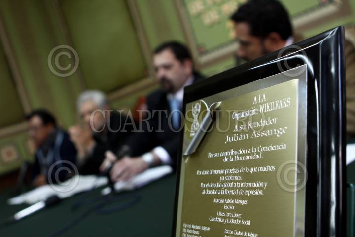 MÉXICO, D.F., 09DICIEMBRE2010.- Periodistas y diputados locales homenajearon con la revelación de una placa en apoyo al australiano Julian Assange, fundador del sitio Wikileaks en el Club de Periodistas. FOTO: RODOLFO ANGULO/CUARTOSCURO.COM