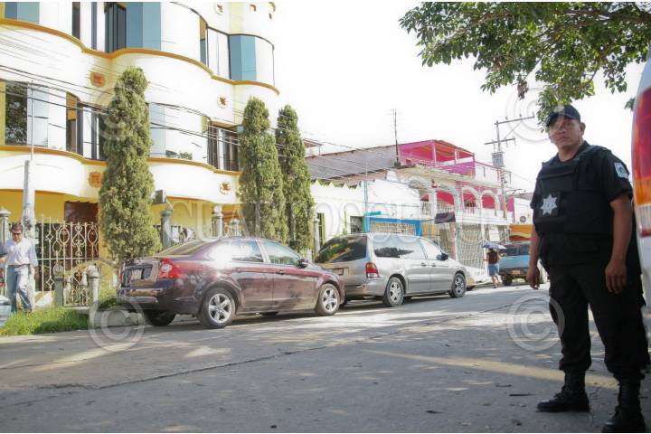 NACAJUCA, TABASCO, 18SEPTIEMBRE2009.- Elementos de la policía municipal resguardan la casa del Alcalde, Abenamar Leyva quien fue plagiado cuando salia de su domicilio ubicado en la calle Melchor Ocampo esquina José María Morelos de la colonia el Carmen. Reportes de las autoridades, revelan que el funcionario fue encontrado abandonado y mal herido después del secuestro en las inmediaciones del DIF por lo que fue trasladado al hospital Rovirosa de la entidad. FOTO: MARCO POLO GUZMÁN HERNÁNDEZ/CUARTOSCURO.COM