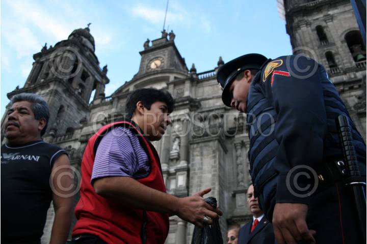 MÉXICO,D,F.,24NOVIEMBRE2007.- Personal de la policía bancaria se coloco a las afueras de las puertas de catedral en donde realizaron una revision a los fieles que acudieron a la reapertura de la catedra metropolitana depués de haber permanecido cerrada por seis días FOTO: SASHENKA GUTIERREZ/CUARTOSCURO.COM