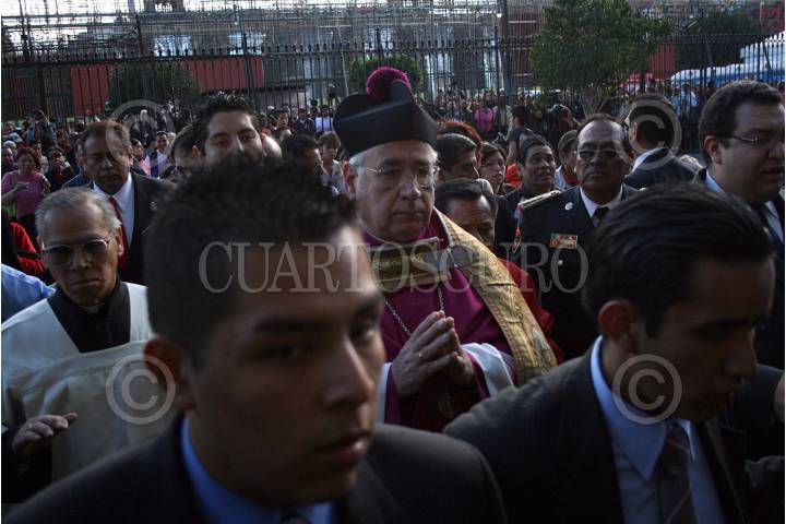 MÉXICO,D,F.,24NOVIEMBRE2007.- Rodeado por un fuerte dispositico de seguridad Ruben Avila Enriquez entra a la catedral metropolitana donde hospicio la misa, depues de que la catedral permanecio cerrada por seis días. FOTO: SASHENKA GUTIERREZ/CUARTOSCURO.COM