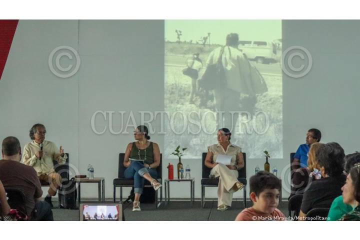 AGUASCALIENTES, AGUASCALIENTES, 17MAYO2025.- Pedro Valtierra, fotoperiodista y director de la Revista Cuartoscuro, Caliope Martínez, historiadora y académica, Lucia Amador, Héctor Vargas, fotógrafo y Mitzi Herrera, docente e investigadora de Arte; durante la presentación en el Museo Espacio de la Revista Cuartoscuro No. 184, homenaje al fotógrafo y maestro hidrocálido, Jorge Camarillo. FOTO: MARIA MIRANDA /METROPOLITANO /CUARTOSCURO.COM