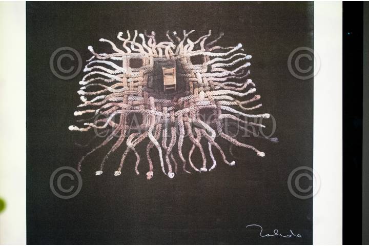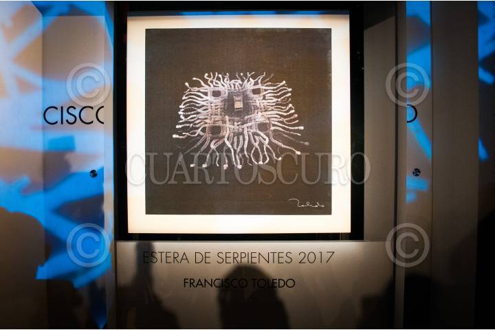 CIUDAD DE MÉXICO, 18JULIO2017.- El artista Francisco Toledo intervino con la obra "Estera de Serpientes" la edición de portada de la revista Los 300 Líderes más Influyentes de México. Durante un video que pasaron en la presentación de la portada, el artista oaxaqueño invitó a las personas influyentes de México a buscar una causa por el país y a no tener intereses que afecten a la población. FOTO: DIEGO SIMÓN SÁNCHEZ /CUARTOSCURO.COM