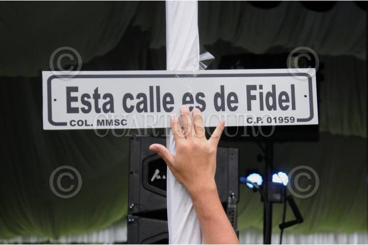 Un asistente al evento colocó un letrero con la leyenda "Esta calle es de Fidel".