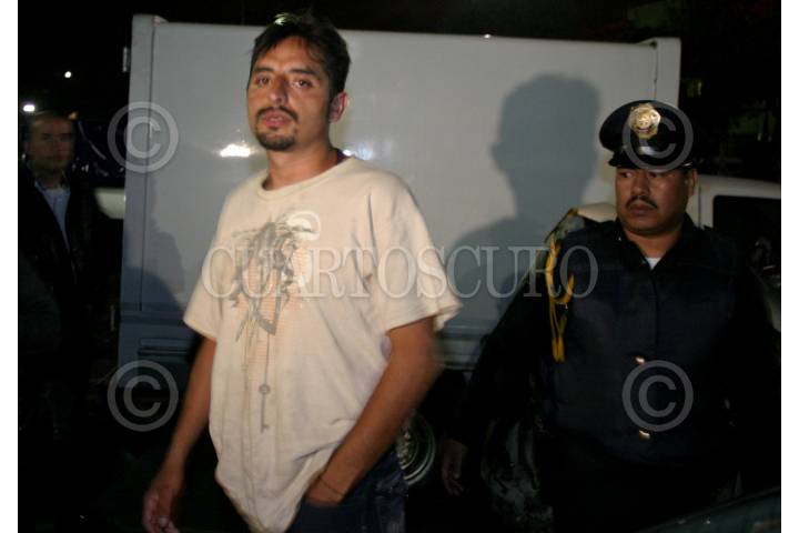 MÉXICO, D.F., 28JULIO2009.- Jorge Arturo Valencia Vega de 27 años y Juan Carlos García Ledezma de 31 años de edad, fueron capturados por ser presuntos ladrones de cuenta-habientes, la captura se realizó en calles de la colonia Progreso Nacional, entre sus pertenencias de les decomiso una replica de revolver calibre 22. FOTO: LUZ ACEVEDO/CUARTOSCURO.COM