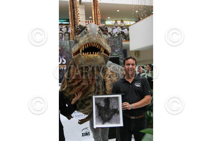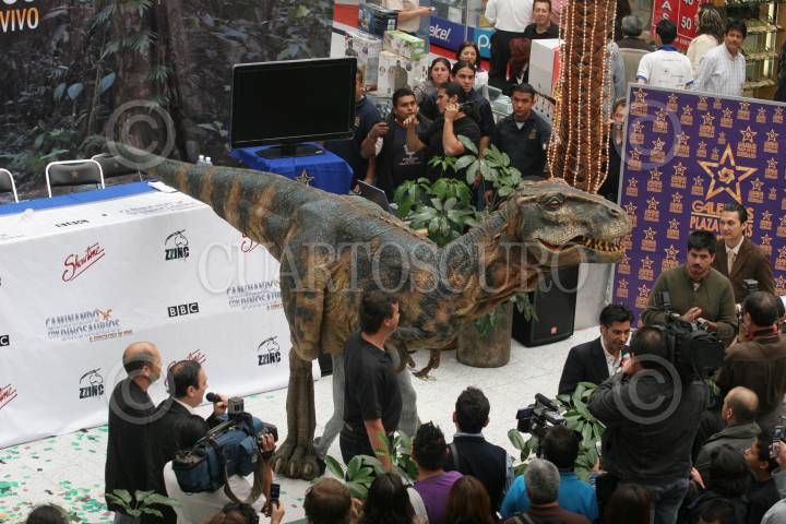 MÉXICO, D.F., 20ENERO2009.- "CAMINADO CON DINOSAURIOS EL ESPECTACULO EN VIVO" fue presentado el día de hoy en una reconocida plaza de la ciudad, este espectáculo presenta dinosaurios casi reales de más de dos metros de altura, estos fabulosos animales se podrán disfrutar a partir del 11 de febrero en el palacio de los deportes, el costo de los boletos serán desde180 pesos. FOTO: RICARDO CASTELAN/CUARTOSCURO.COM