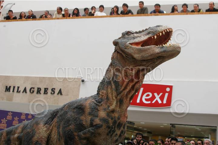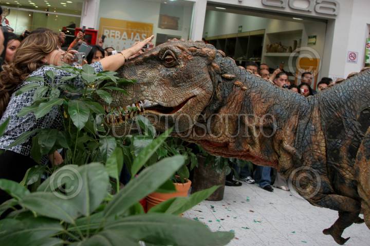MÉXICO, D.F., 20ENERO2009.- "CAMINADO CON DINOSAURIOS EL ESPECTACULO EN VIVO"fue presentado el día de hoy en una reconocida plaza de la ciudad, este espectáculo presenta dinosaurios casi reales de mas de dos metros de altura, estos fabulosos animales se podrán disfrutar a partir del 11 de febrero en el palacio de los deportes, el costo de los boletos serán desde180 pesos. FOTO: RICARDO CASTELAN/CUARTOSCURO.COM