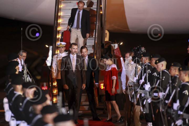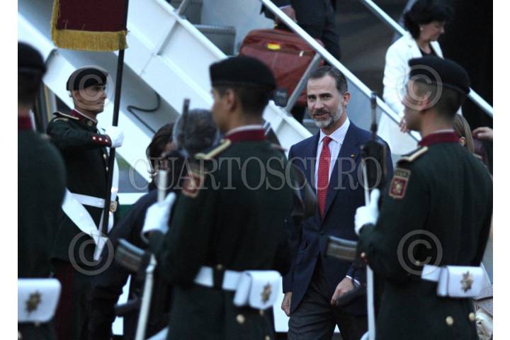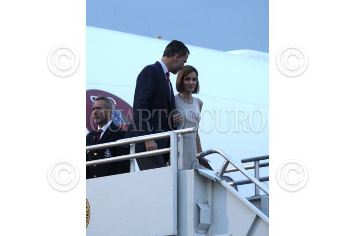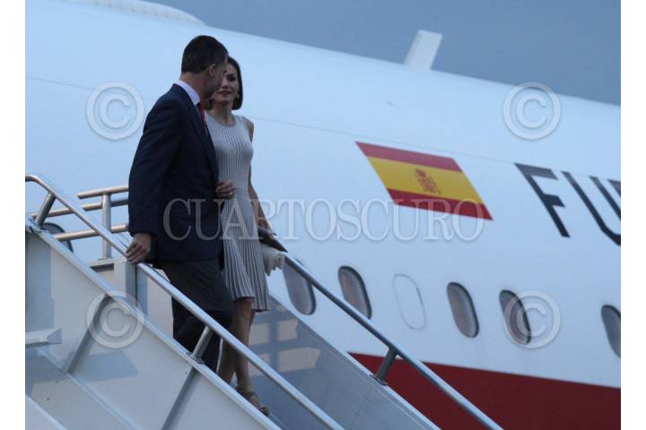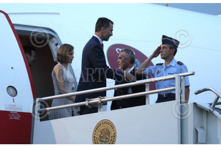 MÉXICO, D.F., 28JUNIO2015.- El rey de España, Felipe VI y su esposa, la Reyna Letizia, durante su arribo al aeropuerto de la Ciudad de México, para su visita oficial al país. FOTO: ADOLFO VLADIMIR /CUARTOSCURO.COM