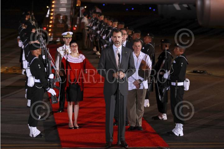 VERACRUZ, VERACRUZ, 06DICIEMBRE2014.- El Rey de España, Felipe VI, durante su arribo al Aeropuerto Internacional Heriberto Jara Corona. El monarca participará en la “XXIV Cumbre Iberoamericana de Jefes de Estado”. FOTO: FÉLIX MÁRQUEZ /CUARTOSCURO.COM