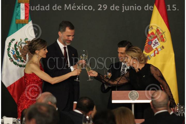 MÉXICO, D.F., 29JUNIO2015.- Enrique Peña Nieto, presidente de México y su esposa, Angélica Rivera, ofrecieron una cena en Palacio Nacional en honor del rey de España, Felipe VI y su esposa, la Reyna Letizia, durante su visita de estado por el país. FOTO: ADOLFO VLADIMIR /CUARTOSCURO.COM