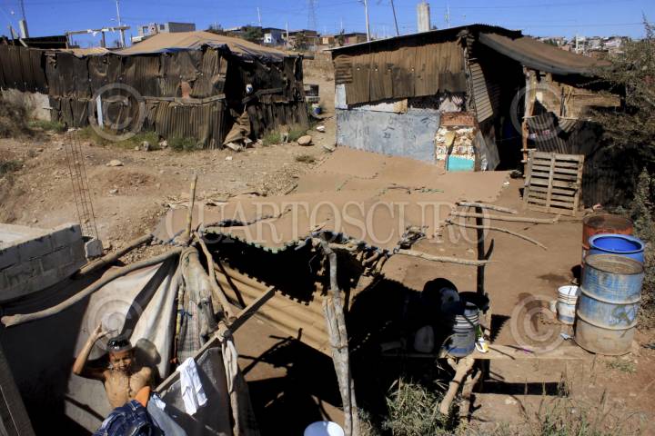 CULIACAN,SINALOA 7FEBRERO2012: En la periferia de la ciudad de Culiacán todavía se observan colonias con un rezago social, donde la pobreza es un problema del día a día, en esta colonia llamada bicentenario muchas familias viven en casas de cartón y laminas, no se cuenta con muchos de los servicios básicos; la señora Lucia Sosa menciona que el principal problema es la falta de empleo, su marido es albañil y hace como 1 mes que no encuentra trabajo ellos tienen 3 hijos y mantenerlos se vuelve cada vez mas duro ya que todo sube menos el sueldo. FOTO: RASHIDE FRIAS/CUARTOSCURO.COM
