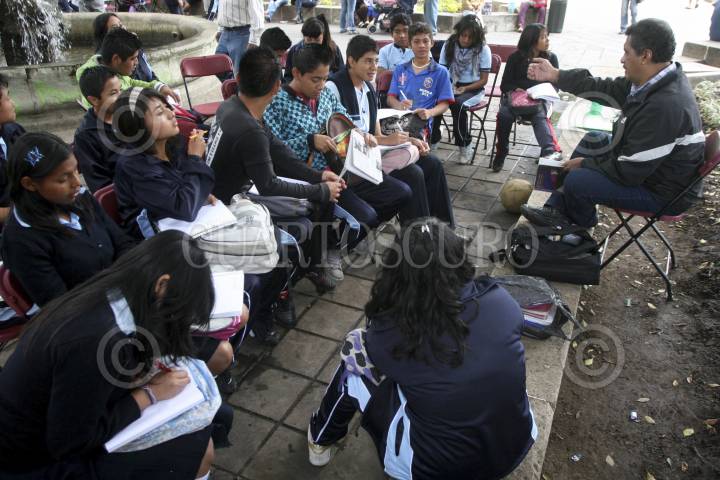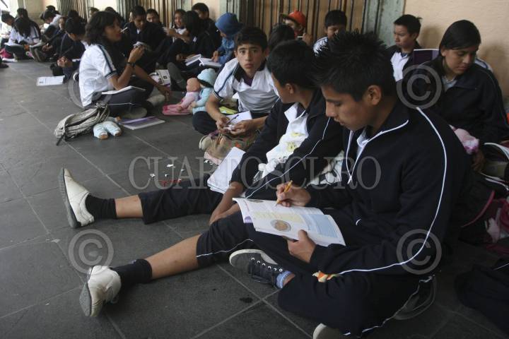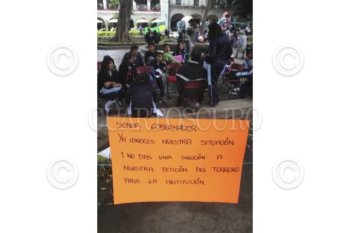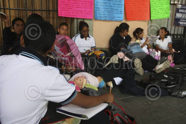 OAXACA, OAXACA, 13NOVIEMBRE2012.- Alumnos y maestros de la Escuela Secundaria Técnica Módulo de Santa Rosa iniciaron con un Plantón Pedagógico en el zócalo y en el corredor externo del Palacio de Gobierno, para exigir la escrituración de un terreno donado desde el mes de mayo para que puedan aprobar la construcción de sus instalaciones y se les pueda otorgar la clave escolar por parte del IEEPO y la SEP. FOTO: ARTURO PÉREZ ALFONSO /CUARTOSCURO.COM