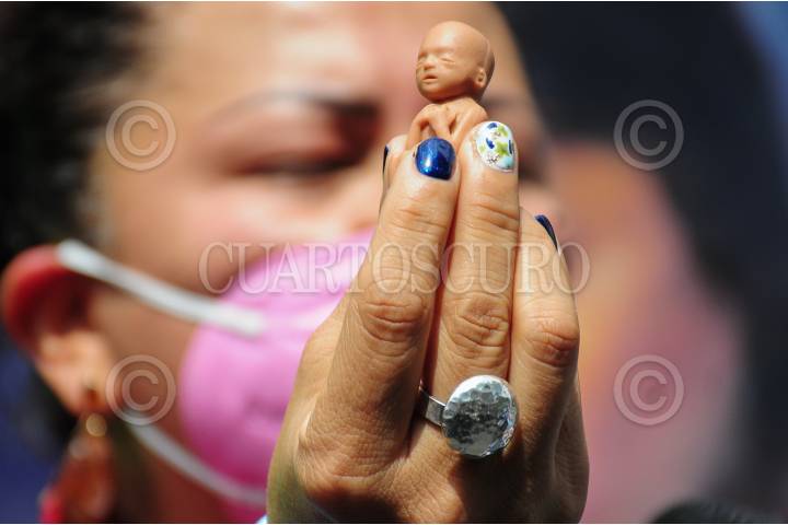 Mujeres rezan frente a la SCJN mientras los ministros discuten la despenalización del aborto.