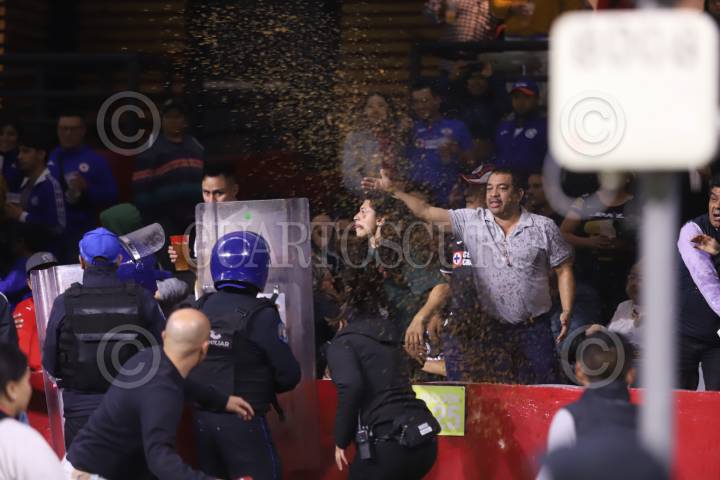 CIUDAD DE MÉXICO, 07OCTUBRE2023. Conato de bronca entre aficionados que asistieron al partido de fútbol Cruz Azul vs Pumas correspondiente a la jornada 12 del Torneo Apertura 2023 de Liga BBVA MX en el Estadio Azteca. FOTO: EDGAR NEGRETE/CUARTOSCURO.COM
